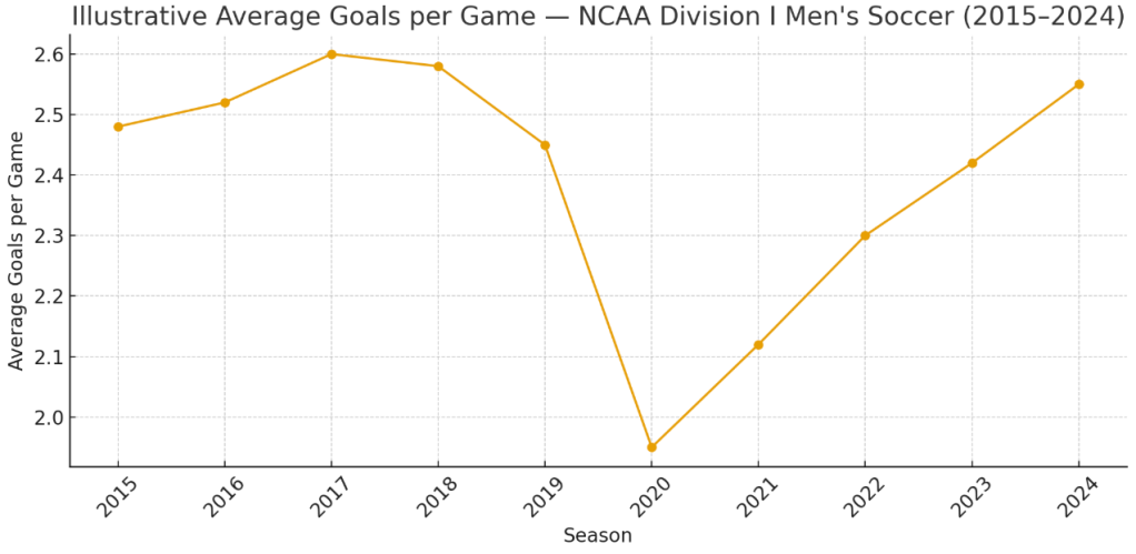 In conclusion, the steady rise in average goals per game in NCAA Division I men’s soccer signals growing competitiveness and entertainment value, which directly fuels interest in American soccer. With international-caliber players raising the standard of play, NCAA soccer is positioned as a vital pipeline to both the MLS and the USMNT, laying the foundation for long-term national and international success.