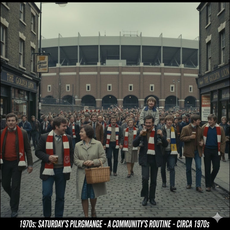 그러나 같은 시대 맨체스터에서는 전혀 다른 방식으로 축구가 살아 있었다. 매주 토요일 오후 3시면 올드 트래포드에 6만 명이 모였다. 특별한 이유가 있어서가 아니었다. 그냥 토요일이었기 때문이다. 아버지가 데려왔던 아들이 이제는 자기 아들을 데리고 왔다. 축구는 이벤트가 아니라 주간의 리듬이었고, 세대를 건너 이어지는 일상의 의례였다.